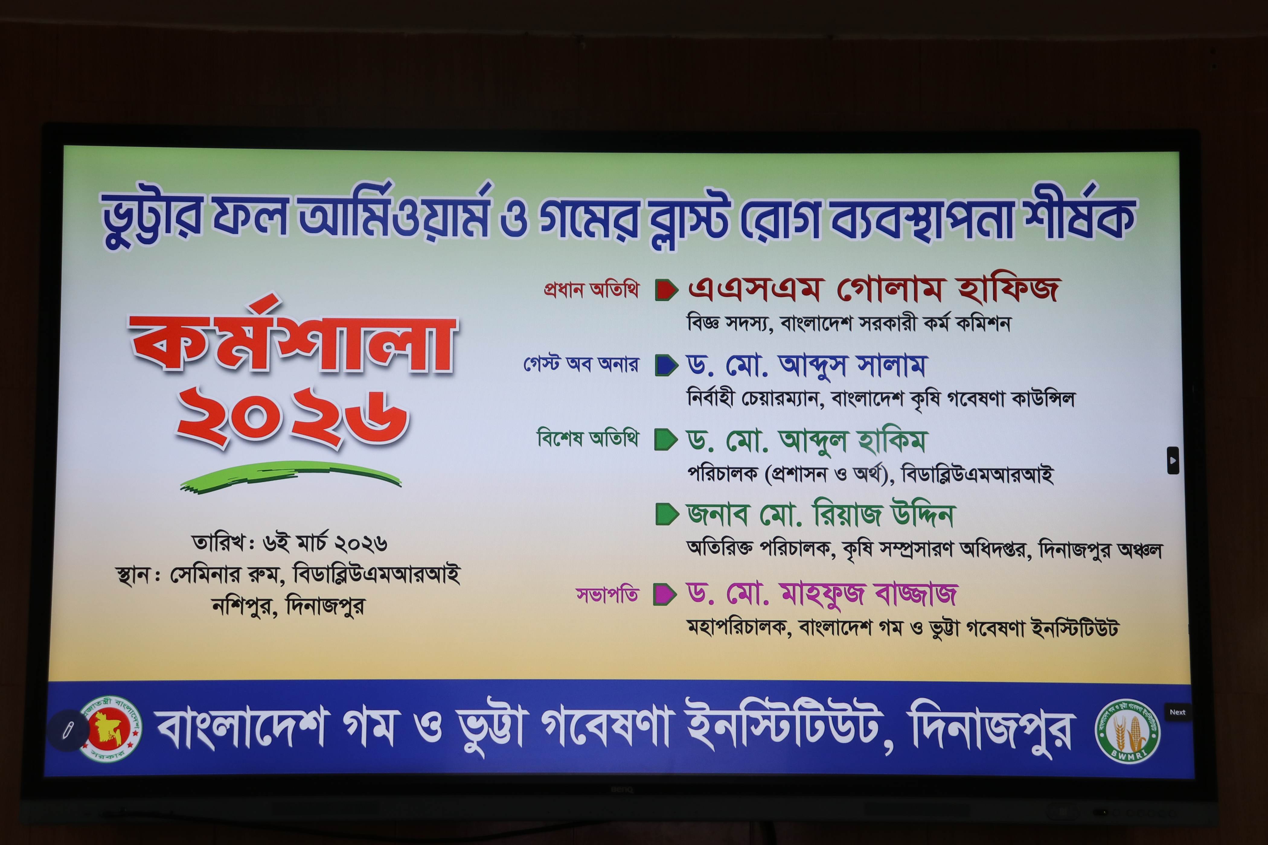 ভুট্টার ফল আর্মিওয়ার্ম ও গমের ব্লাষ্ট রোগ ব্যবস্থাপনা শীর্ষক কর্মশালা ২০২৬