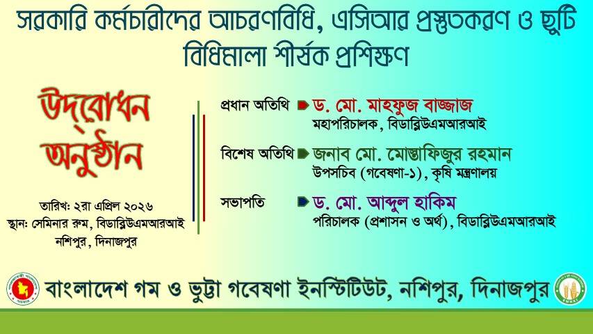 গম বীজ উৎপাদন ও সংরক্ষণ বিষয়ে কৃষক ও সংশ্লিষ্টদের প্রশিক্ষণ-২০২৬